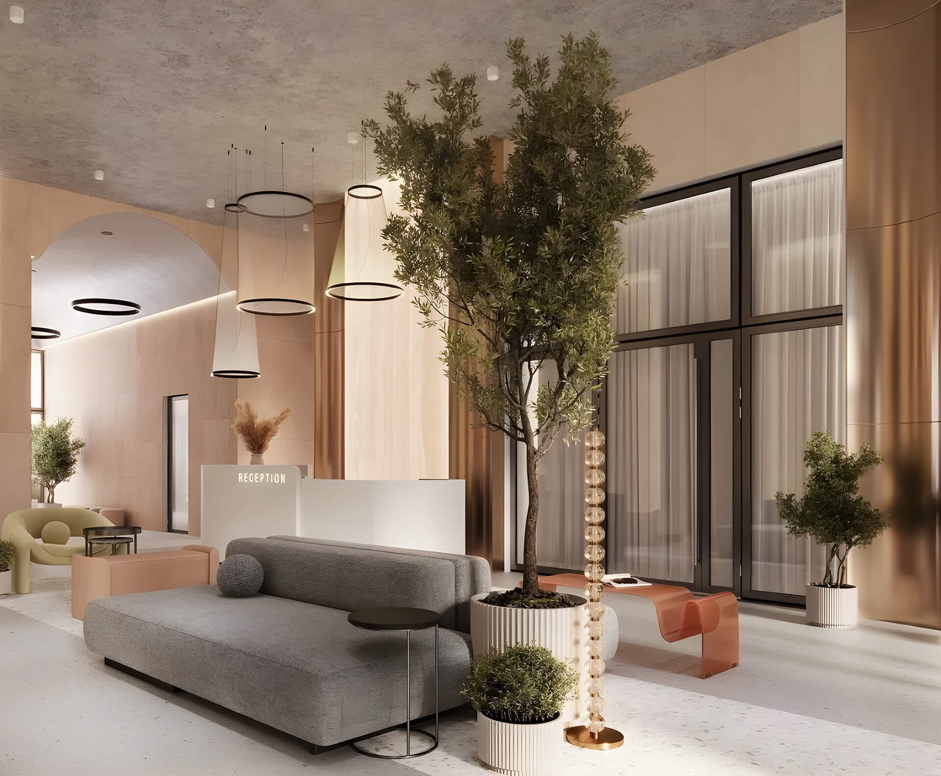 Лобби в жилом комплексе «UNO Соколиная гора» — это визитная карточка проекта и важный элемент архитектурной концепции бизнес-класса. Входные группы выполнены по индивидуальному дизайн-проекту с применением премиальных отделочных материалов — натурального камня, дерева, декоративного металла и авторских элементов освещения. Просторные вестибюли с высокими потолками и панорамными окнами создают ощущение света, уюта и современного стиля, что особенно ценно в городском ритме жизни. Здесь встречают гостей, проводят переговоры и наслаждаются моментом возвращения домой.