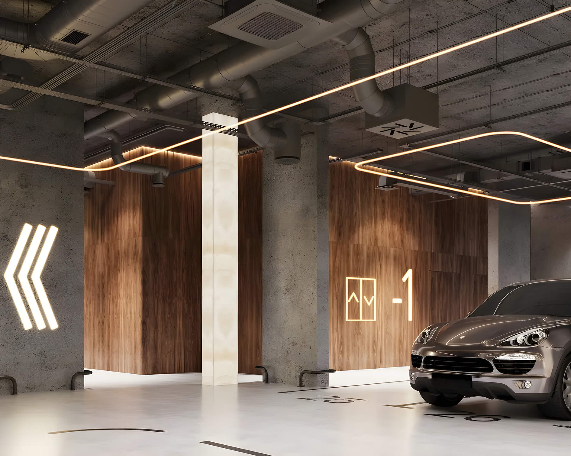 В зоне паркинга предусмотрены кладовые и технические помещения, что позволяет удобно хранить сезонные вещи, спортивный инвентарь или инструменты. Современная вентиляция, системы пожаротушения, зарядные станции для электромобилей и минимальный уровень шума соответствуют высоким стандартам инженерного оснащения. Все элементы спроектированы с учётом комфорта, безопасности и удобства использования на ежедневной основе.